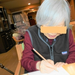 お返事を書くご利用者様(⋈◍>◡<◍)。✧♡お孫さんの写真を見ながら嬉しそうに書かれている姿にほっこり♡させて頂きました!!新型コロナウイルス感染が終息し、気兼ねなく元気にお会いできる日を楽しみに、ご利用者様の健康に配慮していきます。 ありがとうございました!